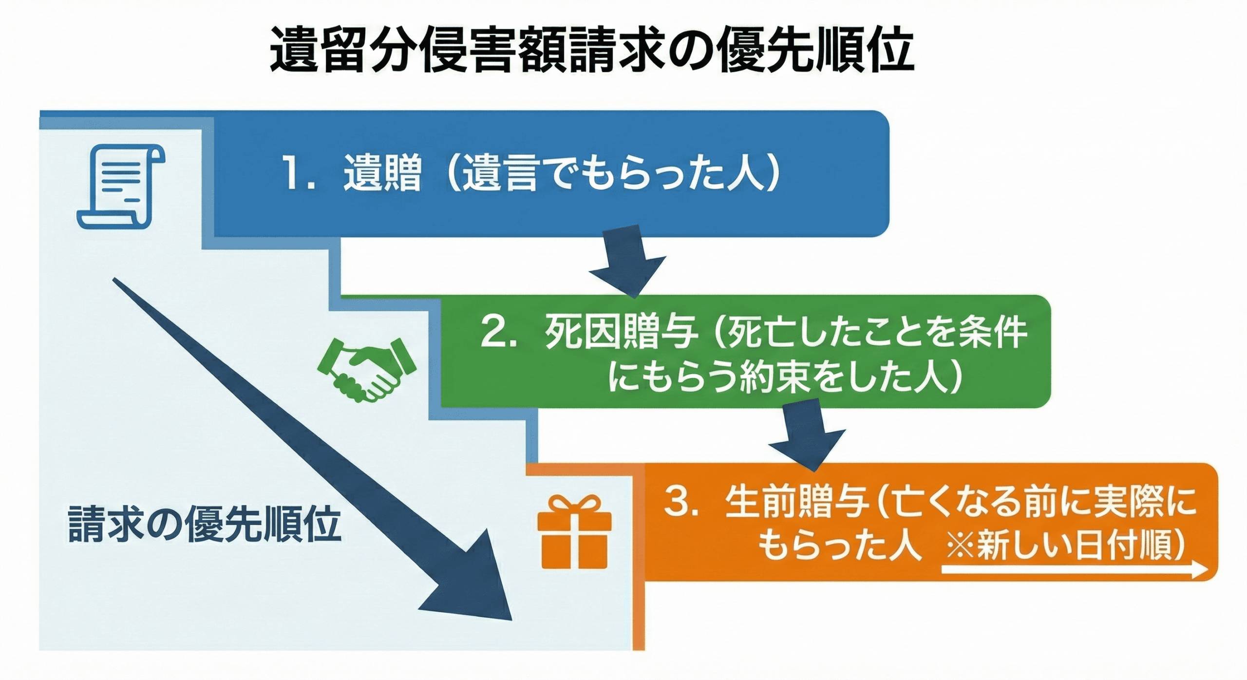 1.遺贈 → 2.死因贈与 → 3.生前贈与